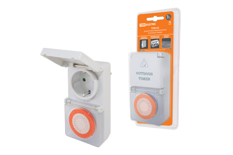 Таймер розеточный ТРМ-03-30мин/24ч-16А-IP44 (суточный, защита от влаги) TDM